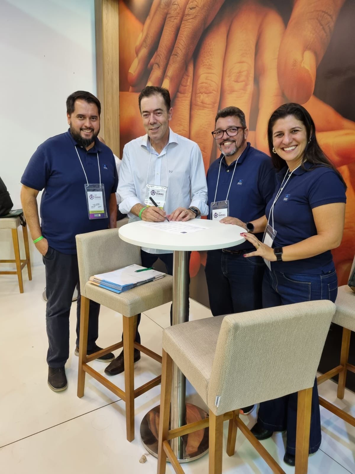 O estande da Seguros Unimed no Suemg foi marcado pela celebração de negócios com sete singulares mineiras: Unimed Araxá, Unimed Araguari, Unimed Inconfidentes, Unimed Patrocínio, Unimed Uberlândia, Unimed Lavras e Unimed Varginha. Antes desses contratos, a Seguradora já tinha 68 parcerias estratégicas, somando mais de 623 mil vidas ativas no Estado — entre saúde, odonto, previdência, seguros de vida e outros produtos do portfólio.
