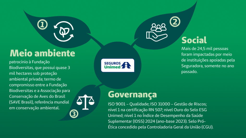 Em menos de um ano, a Companhia foi Recertificada na ISO 9001 – Qualidade e na ISO 31000 – Gestão de Riscos, e no Selo ESG Unimed, promovido pela Unimed do Brasil, na categoria Ouro. No início de 2025, também alcançou a acreditação máxima (Nível I – Ouro) na RN 507, da Agência Nacional de Saúde Suplementar (ANS).