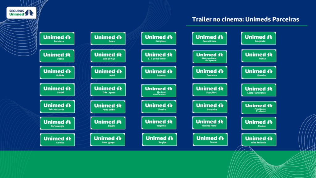 Promovida pela Seguros Unimed em parceria com 65 Unimeds de todo o Brasil, a campanha “Se é Unimed, é Seguro” ultrapassou 226 milhões de visualizações em mais de 2.130 salas de cinema de 131 municípios do Brasil. O número reforça a força da marca Unimed junto ao público e destaca a força do cooperativismo médico.