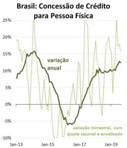 O principal estímulo monetário é a redução da taxa básica de juros. Menor taxa Selic impulsiona o mercado de crédito e, consequentemente, o consumo das famílias e os investimentos das empresas. Esse canal já está a todo vapor, como mostra o aumento da concessão de crédito para pessoa física em 12,7% nos últimos 12 meses, muito acima da média histórica. Ou seja, não é por falta de crédito que o nosso crescimento econômico tem decepcionado.