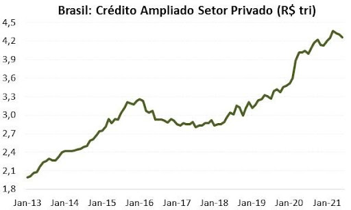 Outro efeito tradicional do aumento da taxa de juros será o desaquecimento do ritmo de expansão da concessão de crédito, o que também arrefecerá a demanda doméstica.