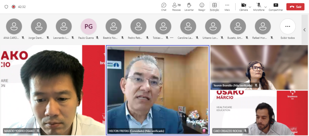 Investidores do Bradesco focados no mercado de saúde receberam Helton Freitas, presidente da Seguros Unimed, para uma reunião online exclusiva, na última quinta (21). Na ocasião, ele apresentou o Sistema Unimed; perspectivas e sinistralidade; iniciativas para aumentar eficiência na gestão de custo; e medidas para ganhar competitividade frente ao aumento de verticalização e da consolidação do setor.
