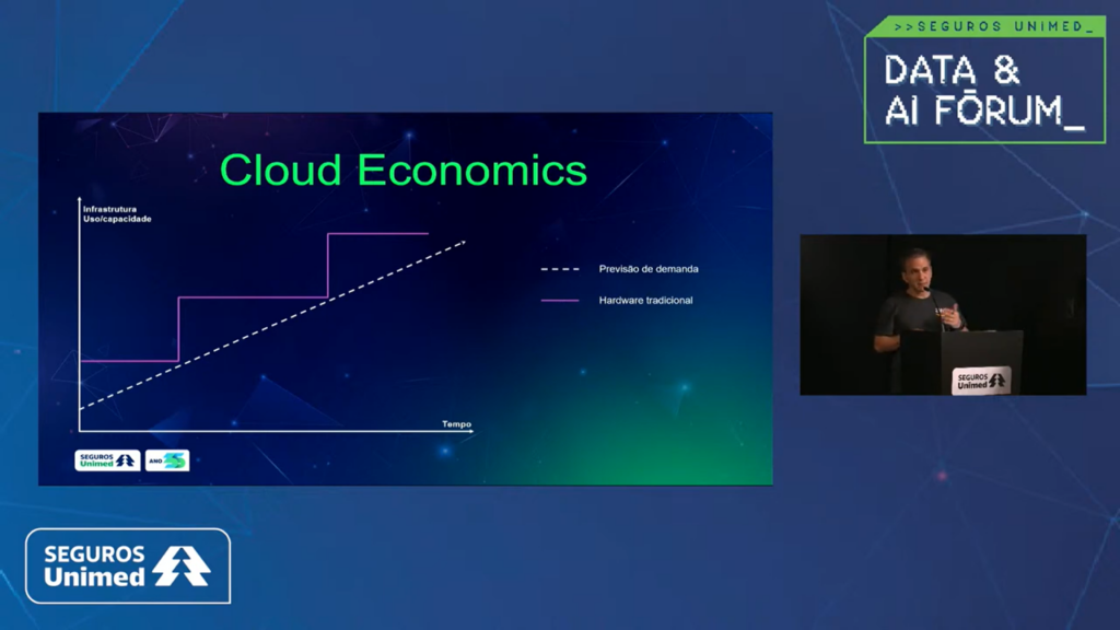 “É fundamental construir uma fundação de dados sólida e confiável para poder construir a Inteligência Artificial de forma consistente, íntegra e acelerada”, enfatizou. Com mais de duas décadas de experiência em tecnologia na área de healthcare, ele compartilhou a jornada da Seguros Unimed para armazenar todos os dados na nuvem.