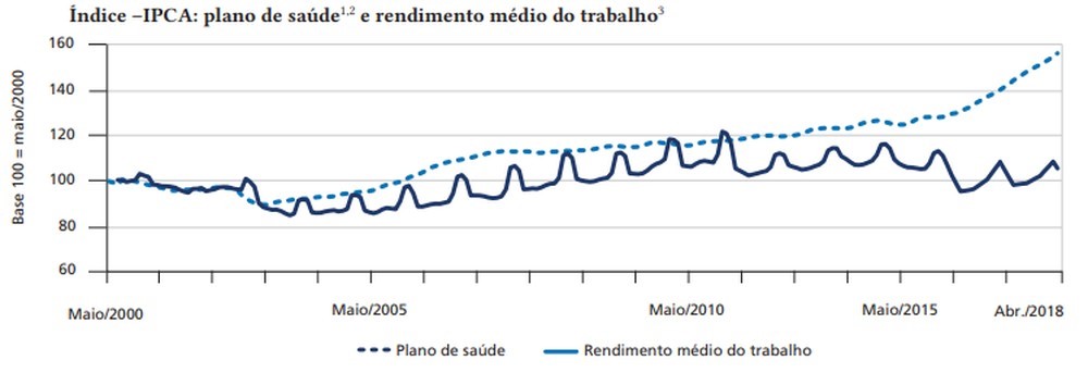 Plano de saúde X renda do trabalho — Foto: Reprodução/Ipea