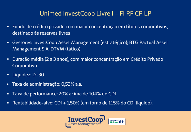 Com a missão de oferecer produtos de investimento rentáveis para as Unimeds, a InvestCoop Asset Management acaba de lançar mais três fundos para atender às demandas das cooperativas da marca: Fundo de Investimento Unimed InvestCoop RF Bancos, Unimed InvestCoop Livre I FI RF CP LP e o Unimed InvestCoop FI Financeiro Livre II RF CP LP Responsabilidade Limitada.