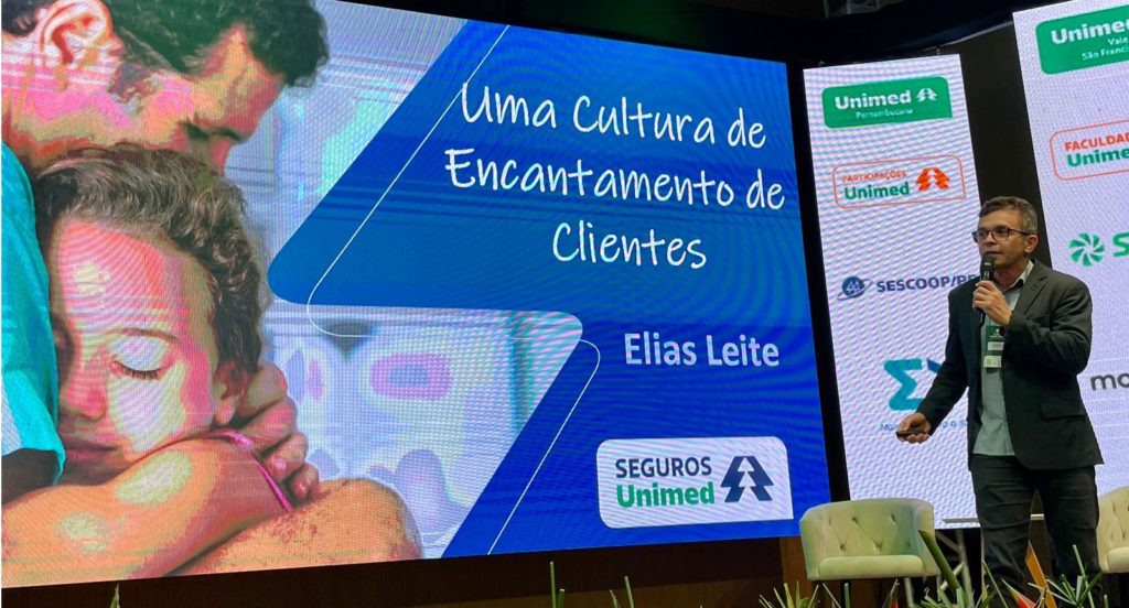 O encontro também teve apresentação de Elias Leite, diretor Comercial, de Produtos e Marketing da Seguros Unimed. Ele foi convidado pela organização a palestrar sobre o tema “Uma Cultura de Encantamento de Clientes”, do qual é especialista. Ele é formado no curso “Jeito Disney de Encantar o Cliente”, que incentiva uma forma única de administração e de relacionamento com o público.