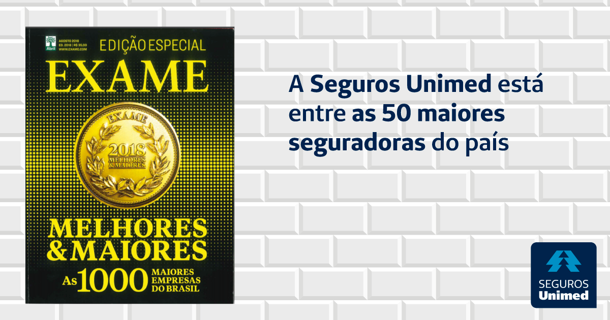 A Seguros Unimed está, mais uma vez, no ranking da EXAME – Melhores & Maiores 2018, entre as 50 maiores seguradoras do país. O anuário premia as empresas que tiveram destaque em 20 setores da economia, durante o ano de 2017.