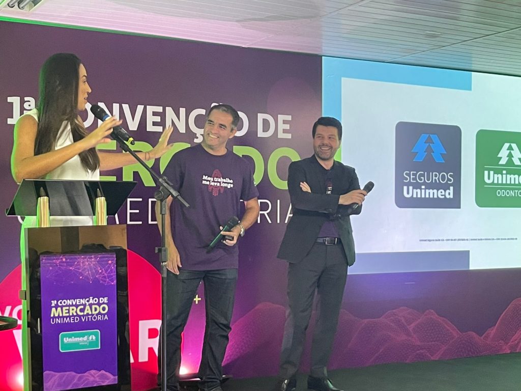 Os produtos da Seguros Unimed ganharam destaque durante a primeira Convenção de Mercado da Unimed Vitória, na última sexta-feira (11). A apresentação foi realizada por Rodrigo Aguiar, superintendente Comercial e de Produtos Saúde e Odonto, e Rodrigo Borges, superintendente Comercial de Vida, Previdência e Ramos Elementares. Márcio Almeida, diretor de Gestão de Clientes, Técnico, Atuarial, também marcou presença.
