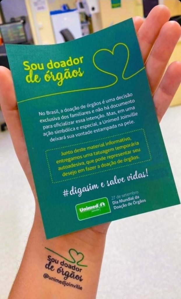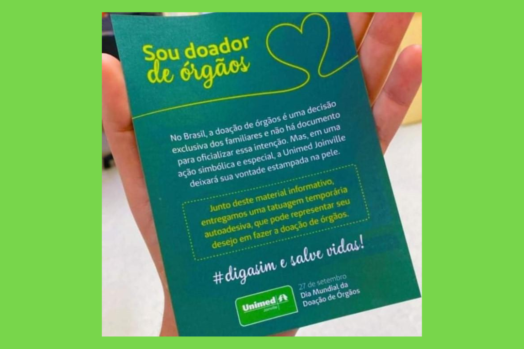 Buscando tornar o tema da Doação de Órgãos um ato contínuo e inspirar as pessoas a buscarem mais informações sobre o assunto, assim como a se declarar doadoras, a Unimed Joinville promoveu uma ação simbólica e especial realizada no Dia Nacional da Doação de Órgãos, em 27 de setembro.