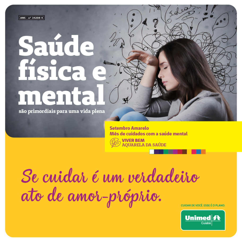 O assunto ainda é tabu em diversos aspectos. Por isso, visando ampliar e promover o debate a Unimed Cuiabá, ao longo do mês, trará em suas redes sociais conteúdos sobre o cuidado com a saúde mental. O material faz parte da “Aquarela da Saúde” e tem por finalidade a educação em saúde e o autocuidado, tendo como foco o “Setembro Amarelo”, com o tema “Se cuidar é um verdadeiro ato de amor-próprio”.