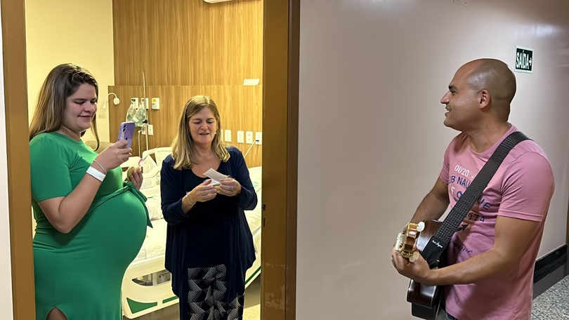 Outro momento especial marcou as comemorações. Na noite da data oficial, o músico e professor David Ferreira Santos Filho percorreu os corredores do Hospital Unimed Vale do Caí (HUVC), tocando seu violão e deixando a noite das pacientes internadas mais alegre. A ação foi desenvolvida pelo serviço de Psicologia Clínica da unidade.